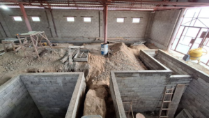В реализуемом проекте с целью эффективной эксплуатации используется биологический фильтр ниже уровня земли, что позволяет использовать его как сумматор и накопитель воды на случаи спуска воды из выростных емкостей. Данный подход позволяет самотеком полностью спускать бассейны при необходимости. Недостатком является большие капиталовложения при земляных и бетонных работах, также увеличение энергозатрат из-за необходимости подъема воды на необходимую высоту.