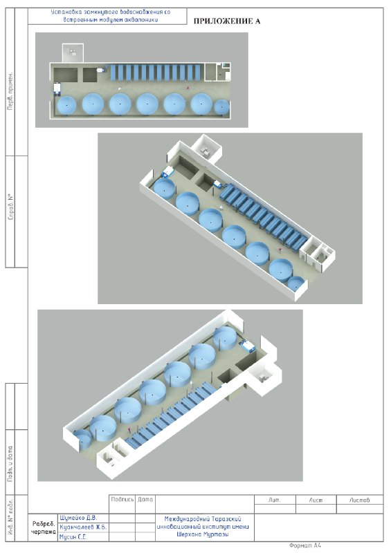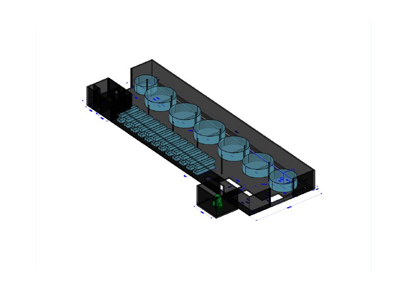 Объект имеет следующие компоненты установки замкнутого водоснабжения со встроенным модулем аквапоники: